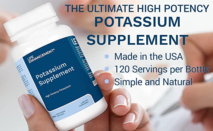 Life Enhancement Potassium Supplement offers an easy way to regulate blood pressure with 1020 mg of Potassium Bicarbonate in easy-to-swallow veggie capsules. Free of common allergens, it boosts daily potassium intake conveniently.