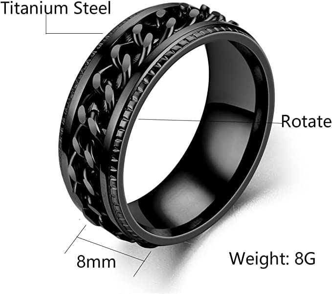 Udolfly Mens Fidget Rings Anxiety Rings for Men are the perfect accessory for anyone looking for a masculine and stylish way to reduce anxieties and stresses. These high-quality rings are made of titanium stainless steel, so they are solid and durable. They feature a high polished inner and outer face for a smooth and comfort fit, as well as a curb chain inlaid design. Plus, these fidget spinner rings are designed to effectively help relieve anxiety, nerves or other bad habits.