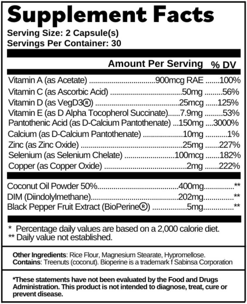 POREFAVOR Skin Support Acne Supplements are designed to target the root cause of pimples, severe acne or mild, and provide long-term results. Ingredients include DIM, black pepper extract, Vit. A, Pantothenic Acid (B5), Vit. D, Zinc & more. For best results, it is recommended to take 2 capsules once a day with a meal - breakfast is best, since we tend to absorb more nutrients earlier in the day. Clearer skin isn't overnight it's a journey, thus it's recommended to continue to take the supplements over a 3 month period. So why wait? Get your own POREFAVOR Skin Support Acne Supplements today!